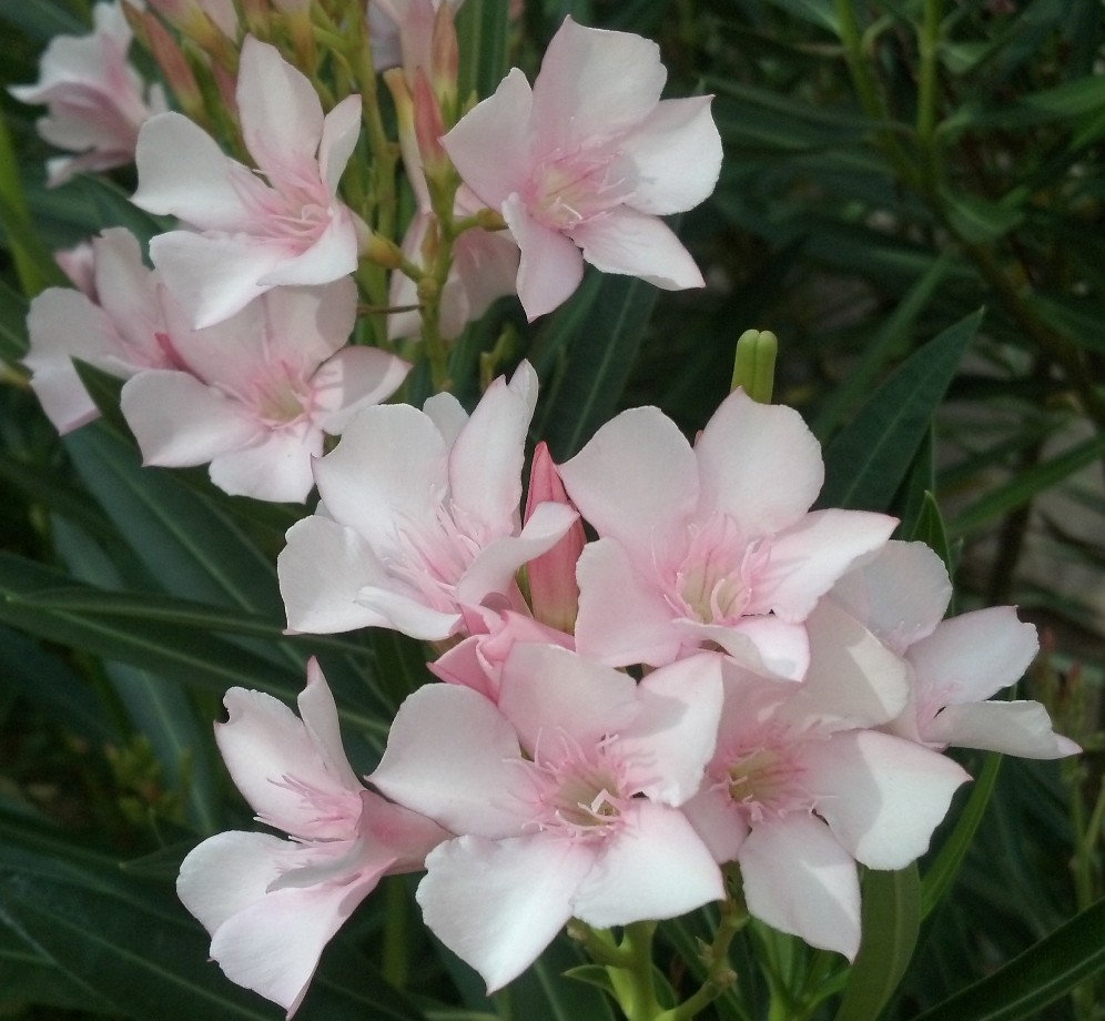Tropical effect through its flowers which occur over an extended period. Standard oleanders flower in shades of red, pink, and white, but other colors and varieties are available. I really like the shade of pink. Nerium oleander 'petite pink' petite pink oleander. Nerium oleander 'petite pink' is an evergreen shrub with a very long bloom cycle.